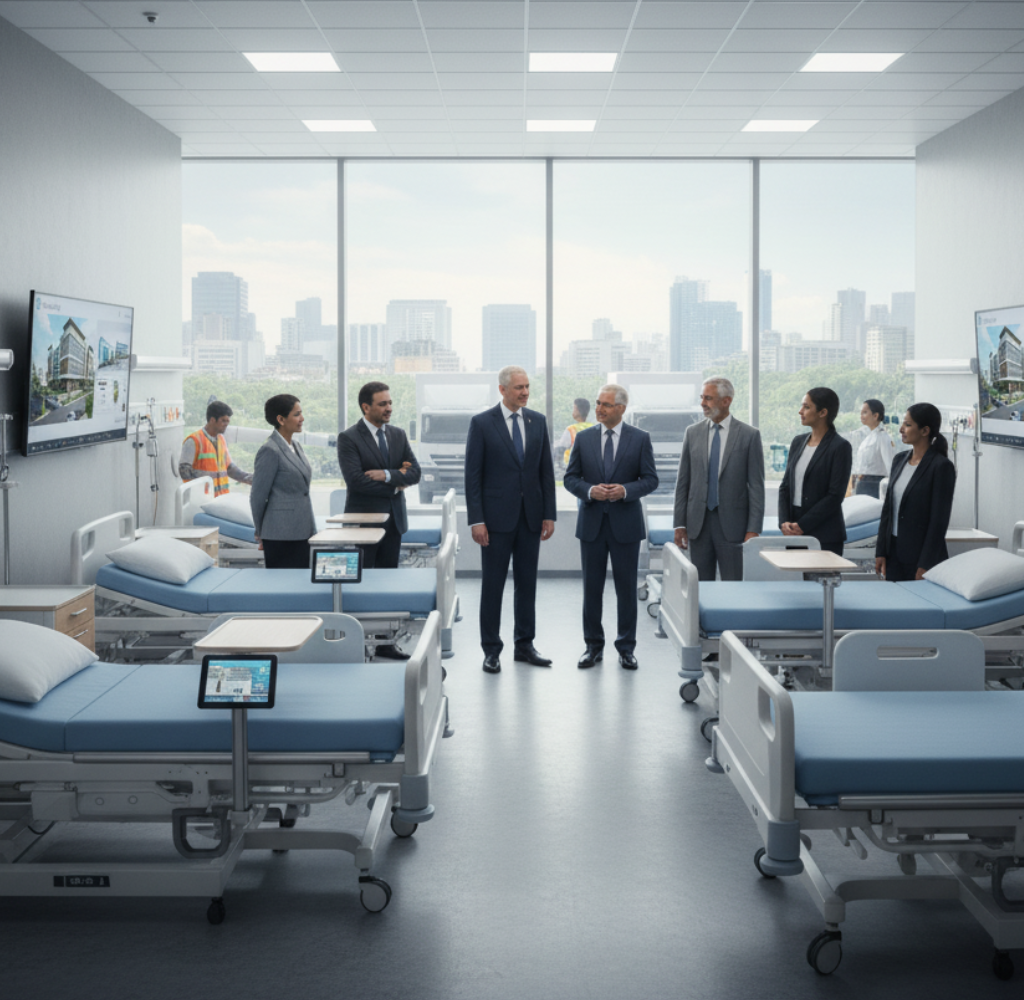 IoT-powered patient beds, modular nurse stations, and hygienic storage solutions built for modern healthcare.
